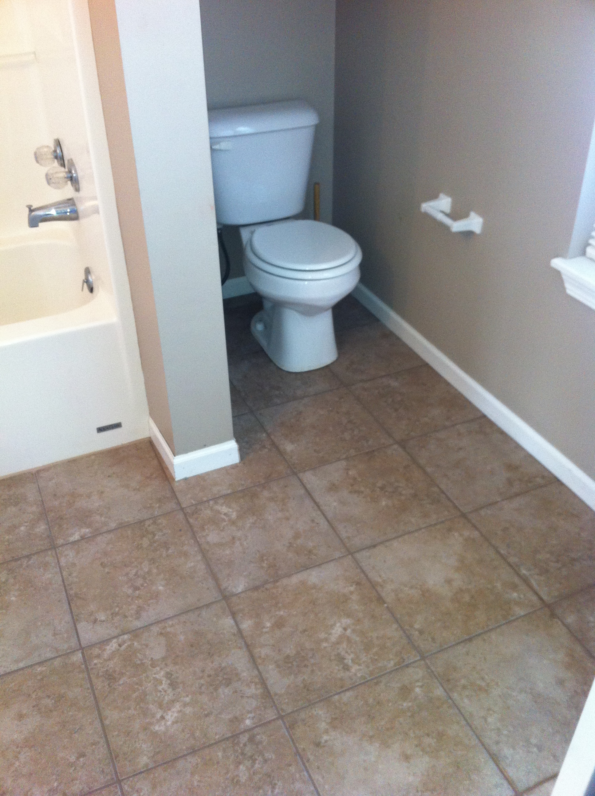 A couple purchased a house recently and there was carpet in the bathrooms. The house is only 8 years old (and so is the carpet) but due to daily use of showering and normal use the carpet had an odor. We came in, ripped up the old carpet and installed ceramic tile. The tile is easy to maintain, won’t hold odors and looks wonderful.