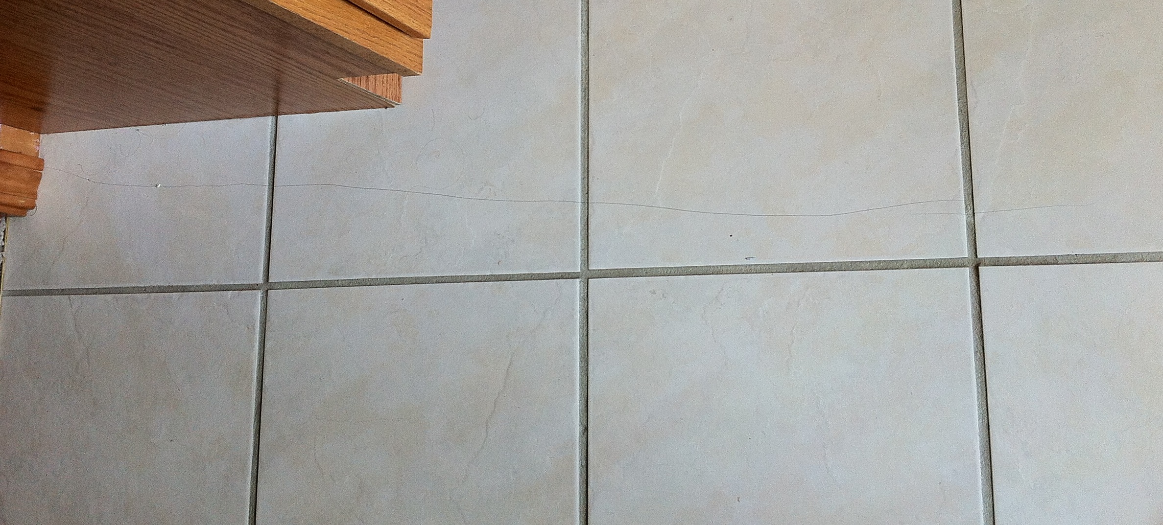 When you install tile over concrete foundations keep a keen eye out for hairline cracks. Cracks like this one is an indication of slab movement. If the slab moves any more (very likely since it is cracked) it is likely that the crack will transfer through the surface of the tile.
