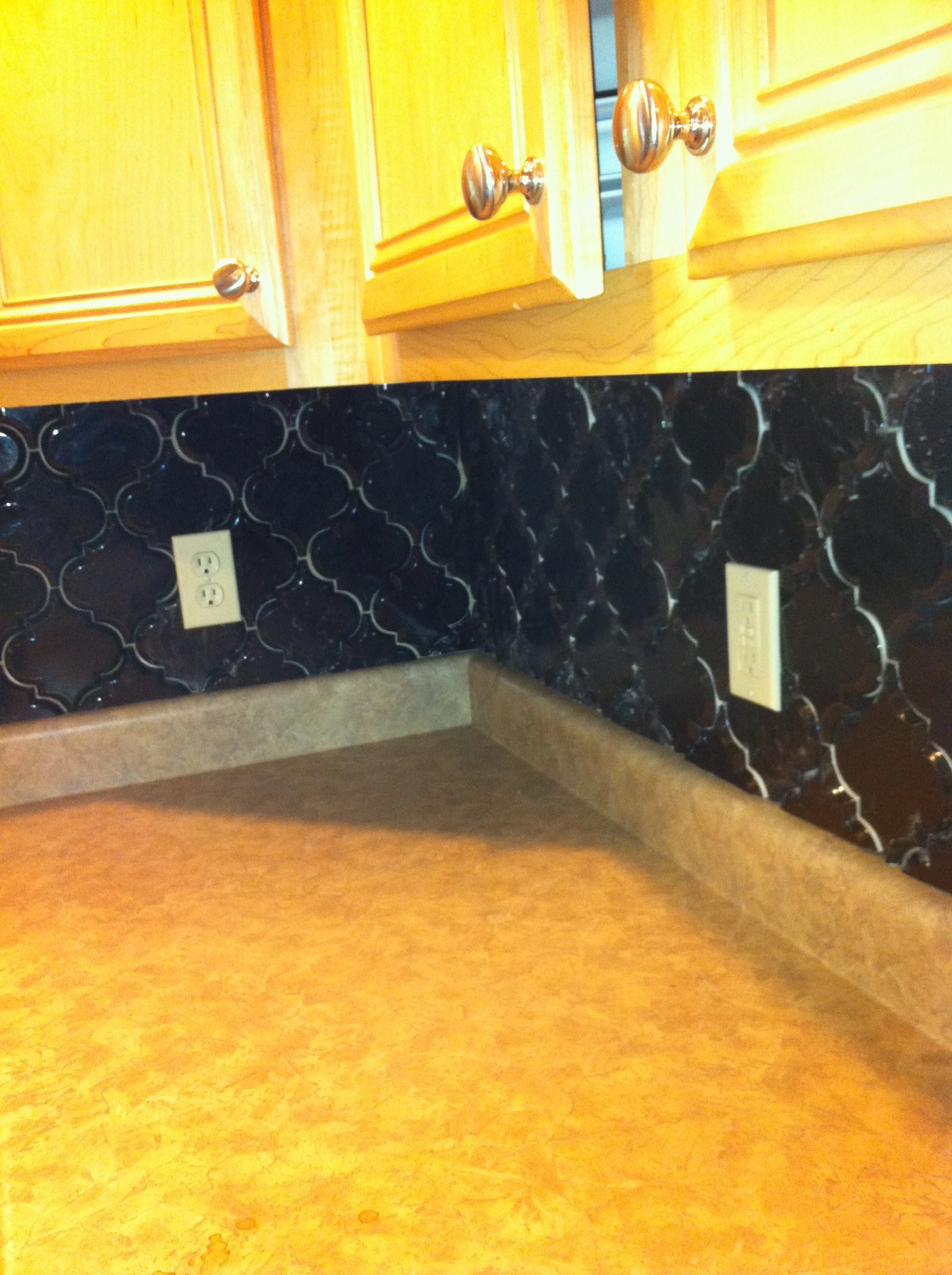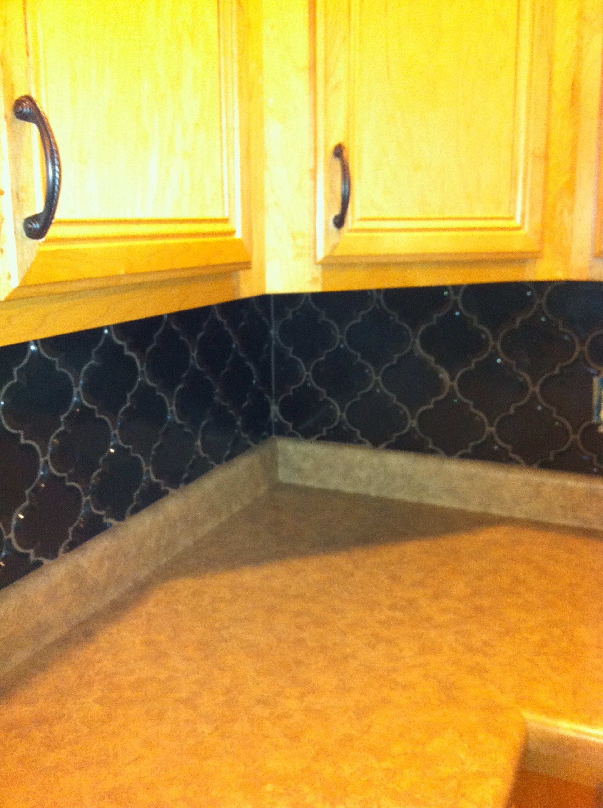 Our kitchen back-splash is complete. When working with beveled arabesque tile of any shape or size it is always a great idea to take your time until you learn the ins and outs of the tile you are working with. This type of tile is definetely not a weekend warrior type of project and will require many hours of dedication to complete. Once you are finished, the satisfaction of a job well done will be your best reward.