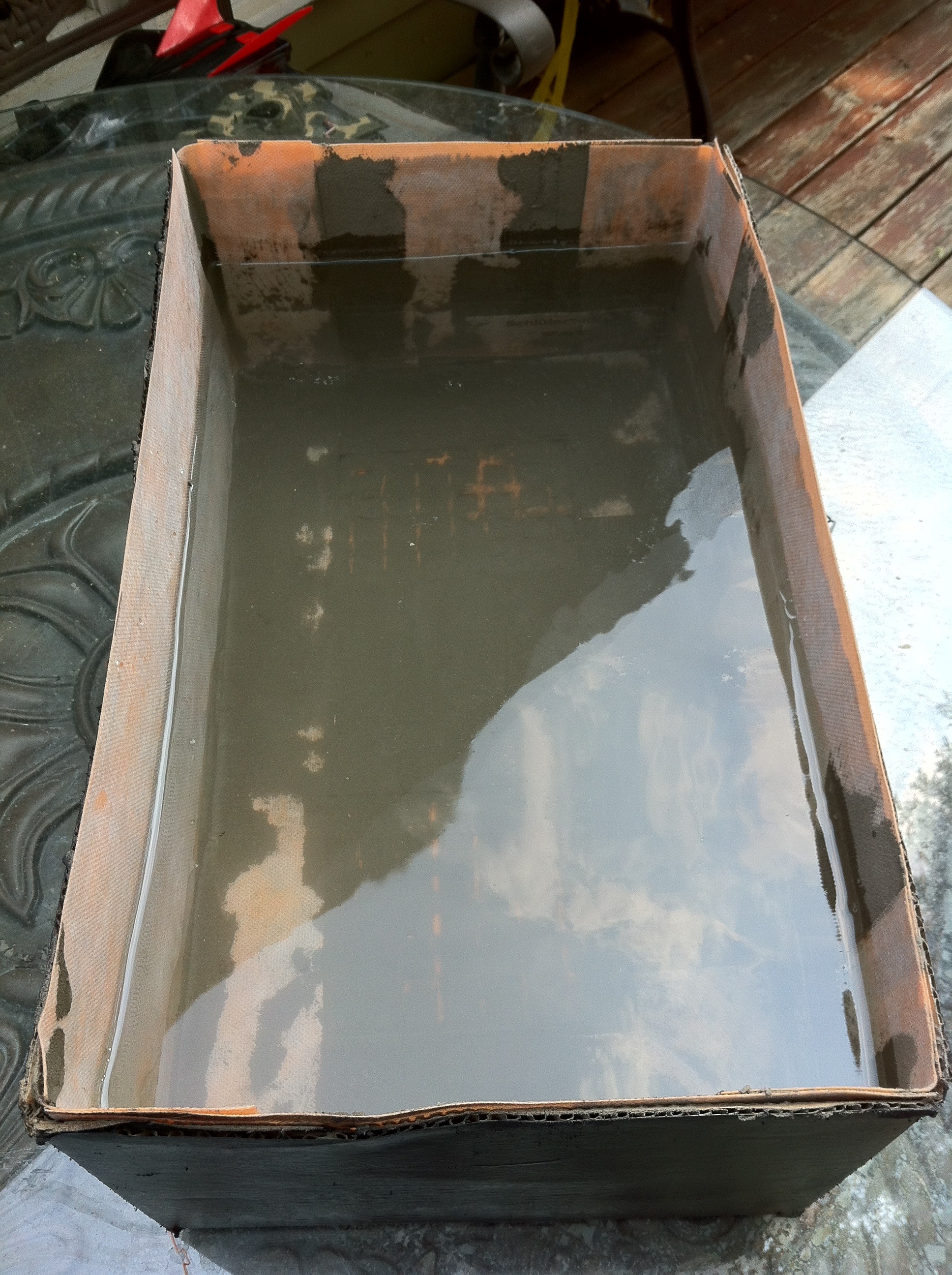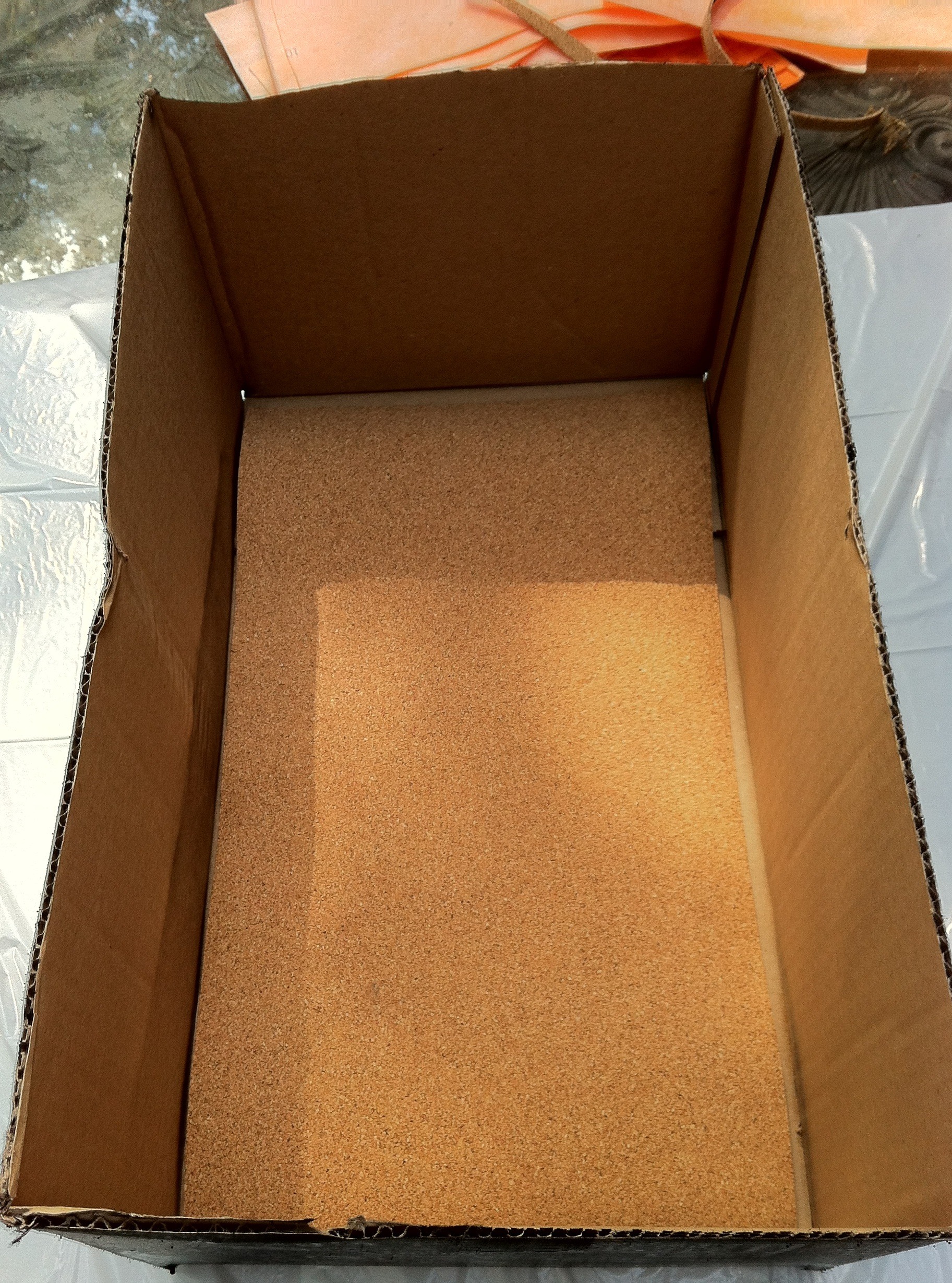 This is the empty cardboard box before any Schluter products were installed. The only item not cardboard is the thin layer of cork on the bottom because the cardboard flaps did not meet (there is a large gap in the cardboard). These are the same steps you would take to waterproof your shower.